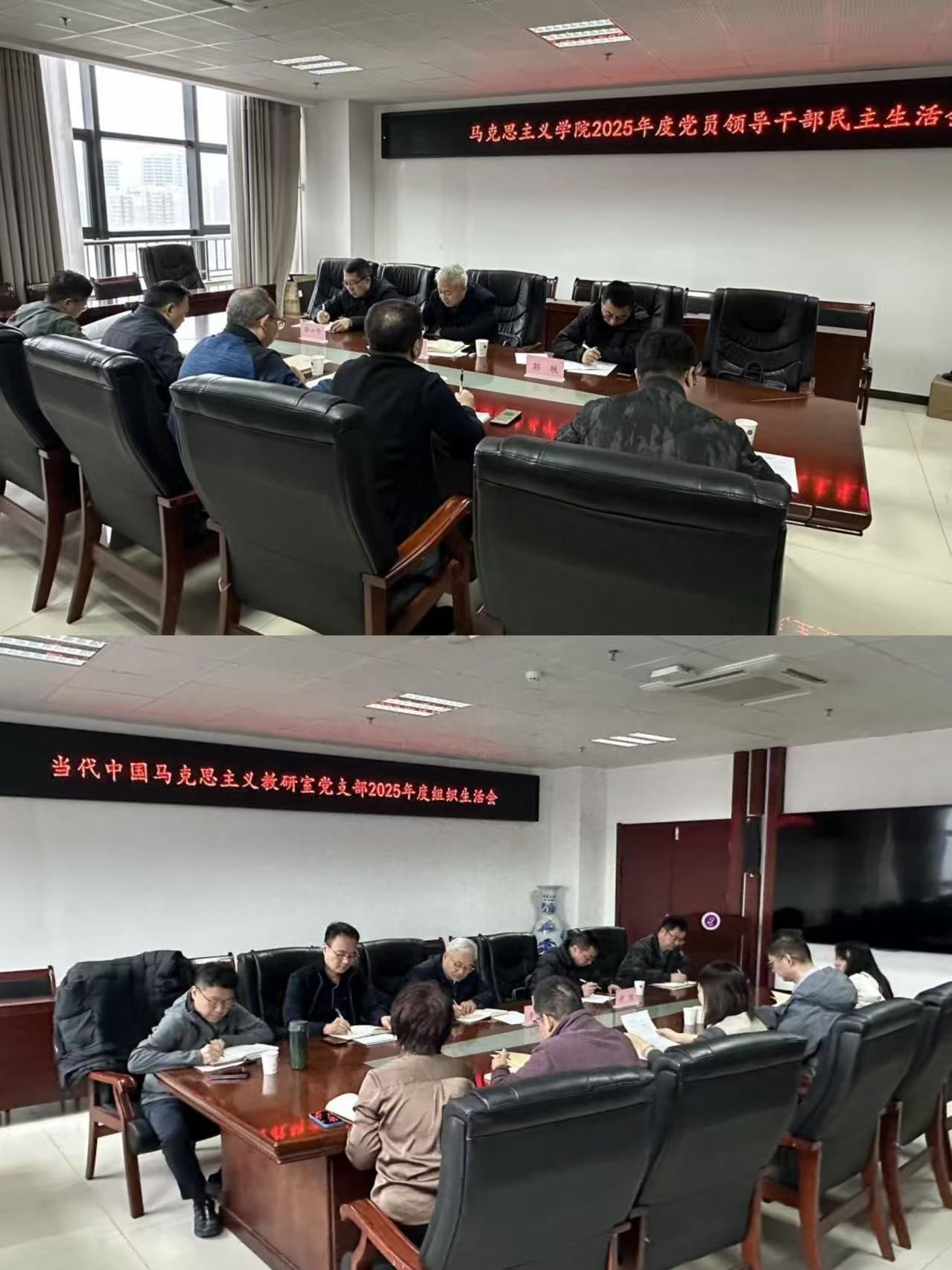 在当代中国马克思主义教研室党支部组织生活会上,李智军与支部党员深入交流,听取意见建议,并就加强思想理论武装、树立和践行正确政绩观、持续加强师德师风建设及全面提升思政课教学质量提出明确要求。