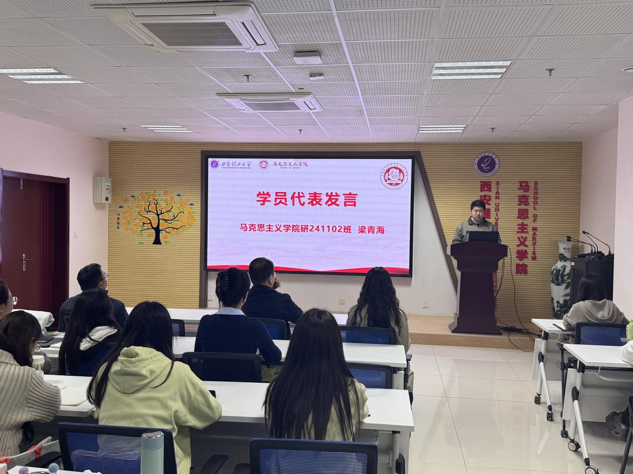 研241102班梁青海同学代表全体学员发言。他表示全体学员将十分珍惜此次公司党课的学习机会,遵守培训纪律,接受党组织的全面考验,争取早日成为合格的中国共产党党员。同时,他呼吁全体学员,在本次培训中做到以下几点:一以理论学习筑牢信仰之基;二以党性修养校准行动坐标;三以实干担当彰显青春价值。