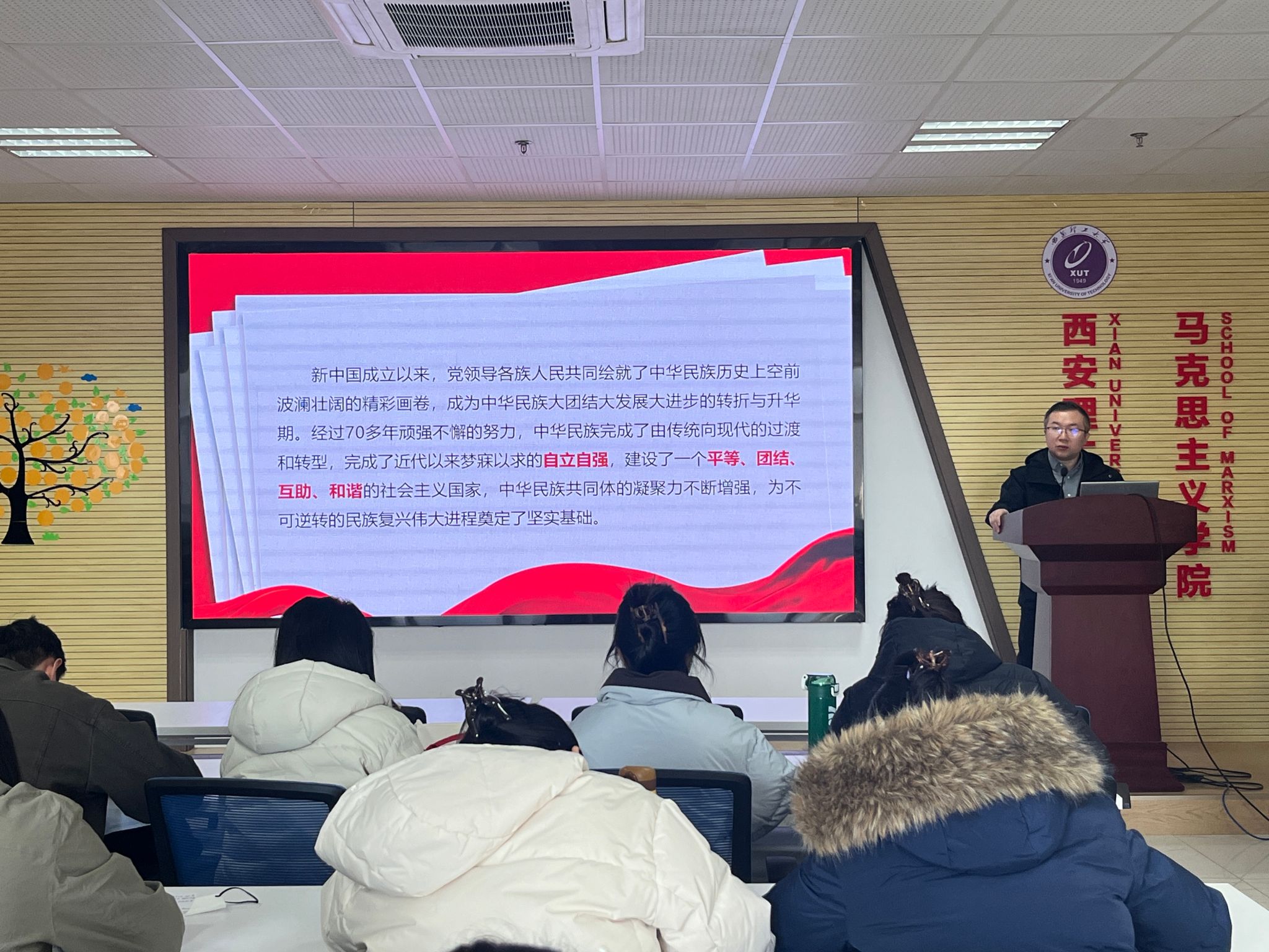 郝智浩老师聚焦“新时代与中华民族共同体建设”主题,系统梳理中华民族共同体建设面临的新挑战与实践新思路,从政治、经济、文化、社会、生态五大领域总结新时代民族工作的显著成就,进一步深化对新时代民族工作战略意义的认识,激发青年主动担当、积极作为的责任意识与使命情怀。