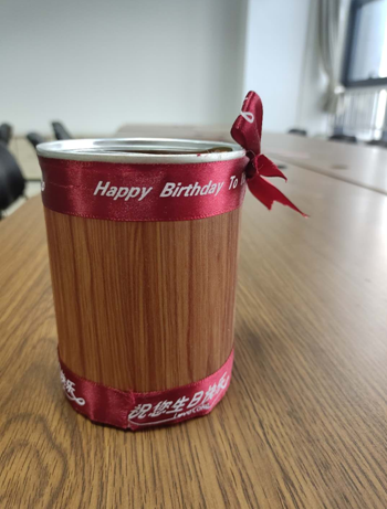为了响应这次变废为宝的活动主题,笔筒的筒身,我选择废弃易拉罐。筒外的装饰,我采用之前剩下的复古壁纸以及生日蛋糕的绑带,复古的壁纸为笔筒增添神秘感,绑带的灵动让笔筒看起来不再单调,现代感与复古感的碰撞为笔筒注入了时尚的元素。这种设计不仅让笔筒发挥它本有的收纳作用,更为它增添了艺术品的气息。