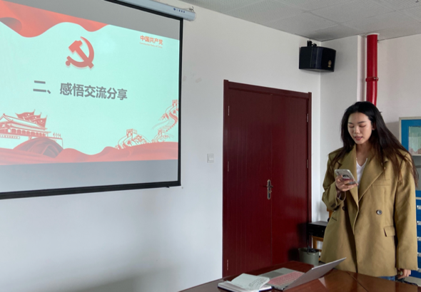 随后,支部成员结合学习内容分享发言。田静同学认为,“革命先烈是一面鲜艳的红旗,一座不朽的丰碑。先烈留给我们的信仰与精神,我们不能遗失,革命战争留给我们这个民族的痛苦和思索,我们不能忘怀。在建团100周年的光荣时刻,我们新时代的青年,更应该严于律己,宽以待人,努力学习科学文化知识,做的德智体美劳全面发展,为中国共产主义青年团的发展蓄力,为祖国的繁荣昌盛奋勇拼搏。