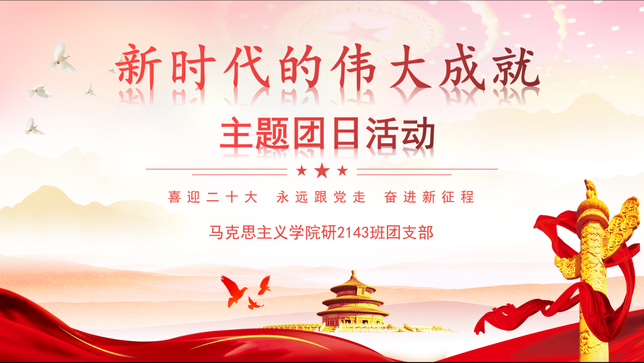 研2143班团支部书记袁娟带领支部成员集体观看了《中国这十年》中国故事相关视频,带领大家一同感受祖国不同阶段的飞跃式发展和辉煌成就,引导青年团员厚植爱国主义情怀。