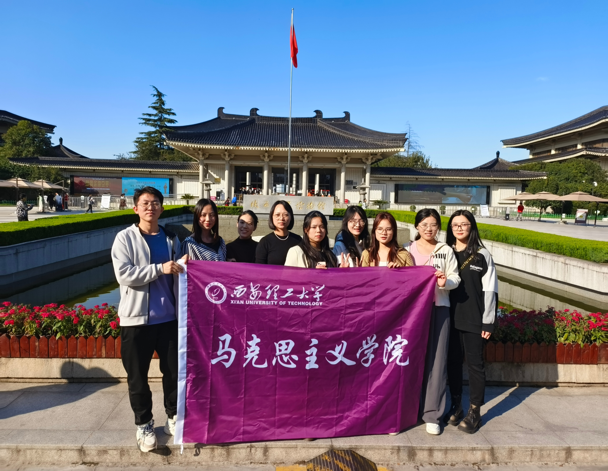 陕西作为十三朝古都,遍布在全省的23453处古遗迹是人类发展历史不可湮灭的文明印记,14367处古墓葬是中华文明不可割断的文明根脉,6702处矗立在三秦大地上的古建筑是中华文明不可颓堕的文明标识,1068处石窟寺、石刻类文物是不可剥蚀的文明宝库,3213处近现代重要史迹特别是革命文物是红色文化的鲜明印记。陕西历史博物馆作为展示陕西发展历史和对外交流的重要窗口,在传承中华文明方面发挥了独特作用。为了加深对陕西乃至中华五千年悠久历史的了解,10月20日,OK138太阳集团研究生会赴陕西历史博物馆参观研学。