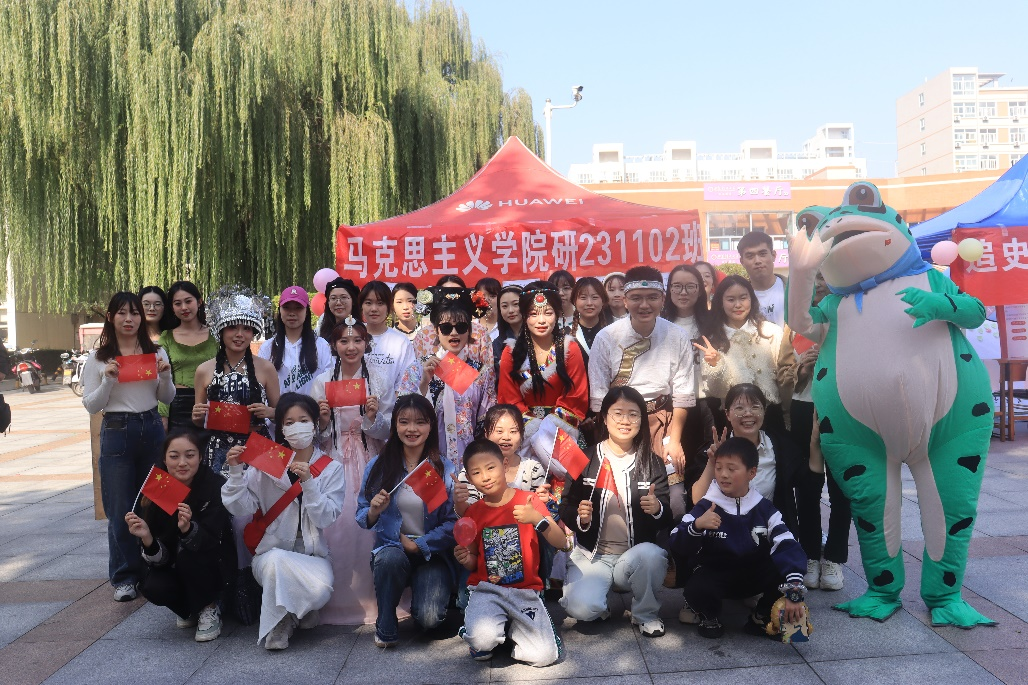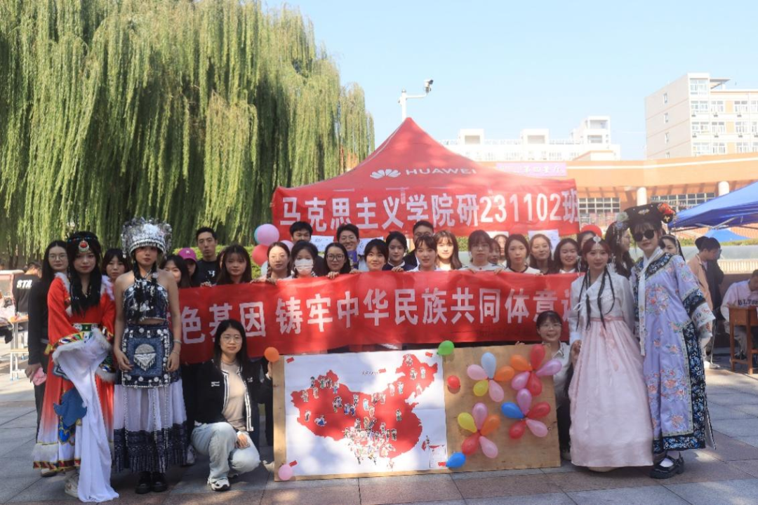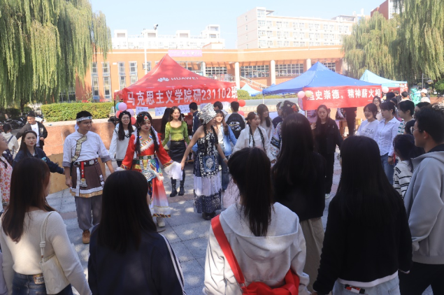10月28日,团支部在学校三餐厅广场开展面向全校师生的“民族团结一家亲,同心共筑中国梦”主题活动。举办了各民族人像中国版图粘贴、少数民族特色游戏体验、少数民族服饰穿戴体验等丰富多彩的活动。中午时分,全体同学共唱《爱我中华》歌曲,同学们载歌载舞,吸引了过往师生们驻足观看,拍照打卡,活动赢得了在场师生的阵阵掌声与喝彩。