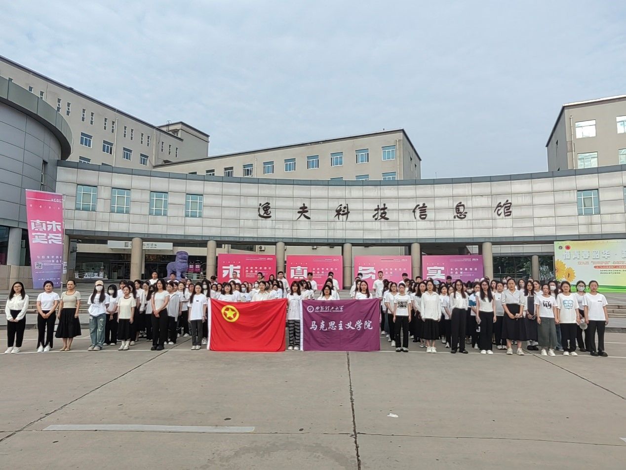 最后,全体师生齐唱中国共青团团歌《光荣啊,中国共青团》,歌声中充满了大家对共青团组织的热爱和忠诚,也展现了师生们团结一心、奋发向前的精神风貌。歌声回荡,激励着每一位青年逐梦前行,志立高远,自强自新。