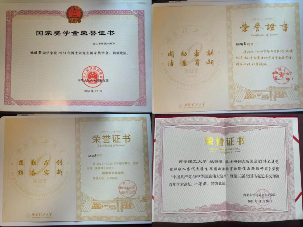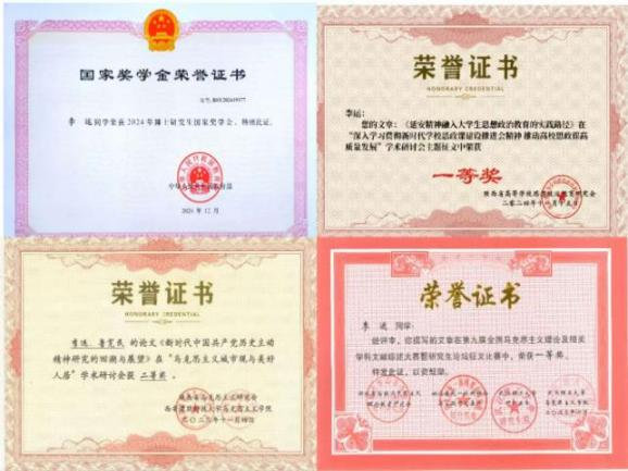 作为一名OK138太阳集团的研究生党员,她始终把深入学习贯彻习近平新时代中国特色社会主义思想作为首要任务,坚持把撰写高水平理论文章作为学习成效的现实检验。她化笔尖为力量,发表理论文章2篇,积极参与国内学术会议并获得相关重要奖项。另外,她学习刻苦,努力钻研,先后获得国家奖学金、研究生学业奖学金、“三好员工标兵”等个人荣誉,积极参与导师课题,在求学科研的道路上行稳致远。