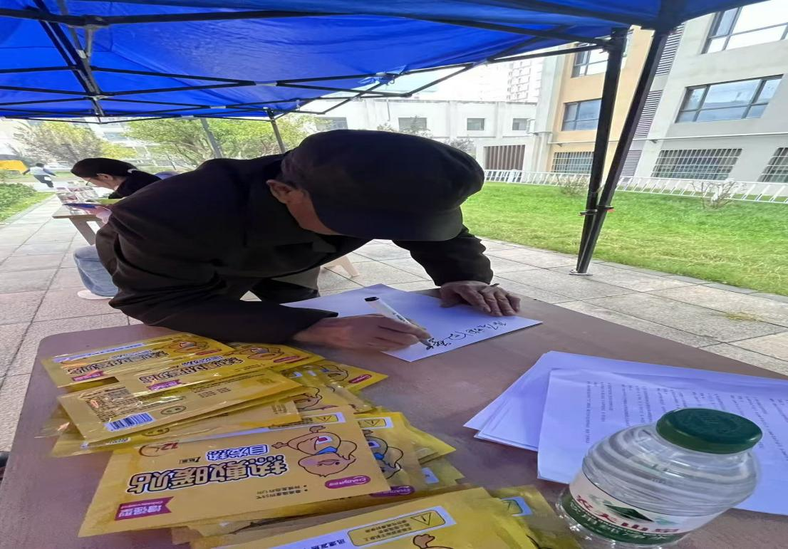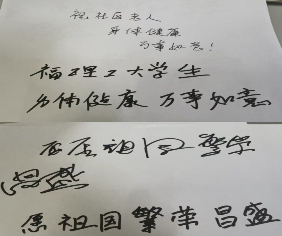 “写下对祖国的美好祝愿”环节温情满溢。现场的老人们手握笔杆,尽管双手略显颤抖,字迹却饱含深情。老人们用自己颤抖的双手写下了对祖国最真挚的热爱与赞美,每一笔都承载着岁月沉淀的家国情怀,每一划都传递着对祖国未来的殷切期望。