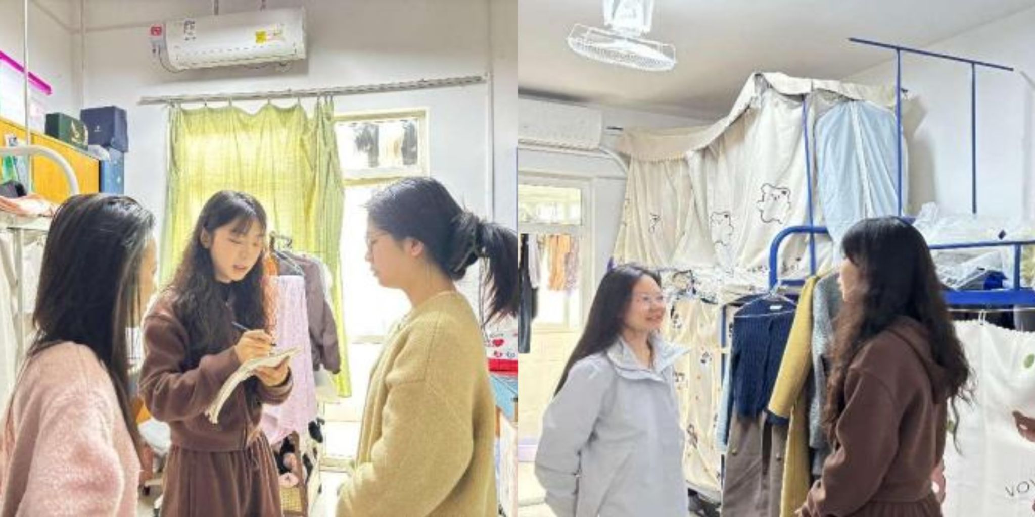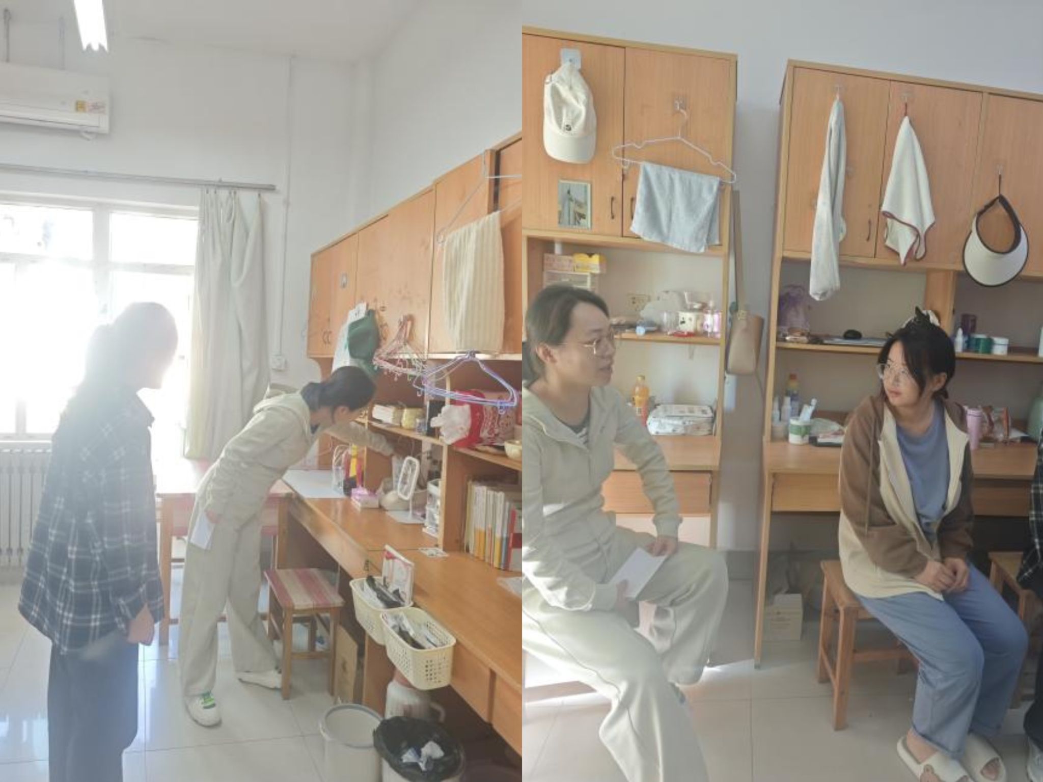 各年级辅导员深入员工宿舍开展安全卫生隐患排查专项活动,重点针对违章电器使用、私拉电线、寝室卫生等问题进行检查。期间,辅导员和员工亲切交流,提醒员工宿舍安全管理规定、安全用电常识、冬季宿舍通风等,教育引导员工自觉遵守学校宿舍管理相关规章制度,提高安全防范意识,掌握基本消防技能,养成良好卫生习惯。