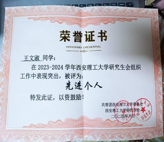 在三年班委的历练当中,他始终以自我提升为核心,在参与班级事务、统筹协作的过程中主动锤炼多元能力,每一次实践都是突破自我的契机。他注重在具体事务中积累经验,将班级工作作为打磨问题解决能力、团队协作能力与统筹规划能力的练兵场,不断拓宽认知边界、补齐能力短板,实现自我价值与集体发展的双向赋能,并于2024年获“尚能修美先进个人”,连续三年荣获“优秀研究生干部”称号。