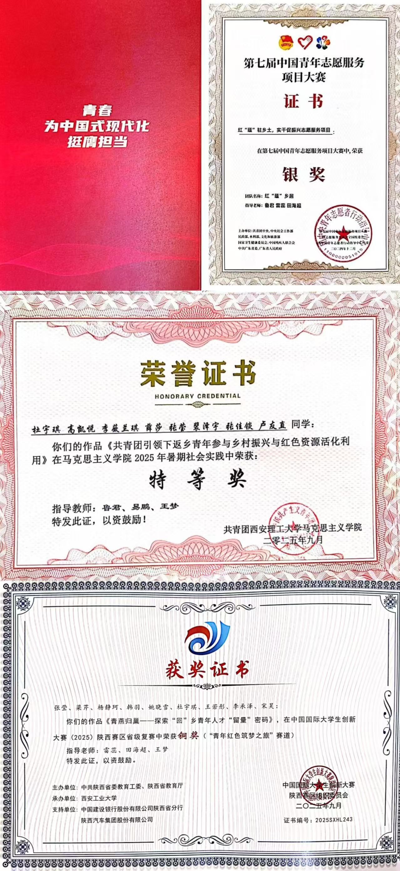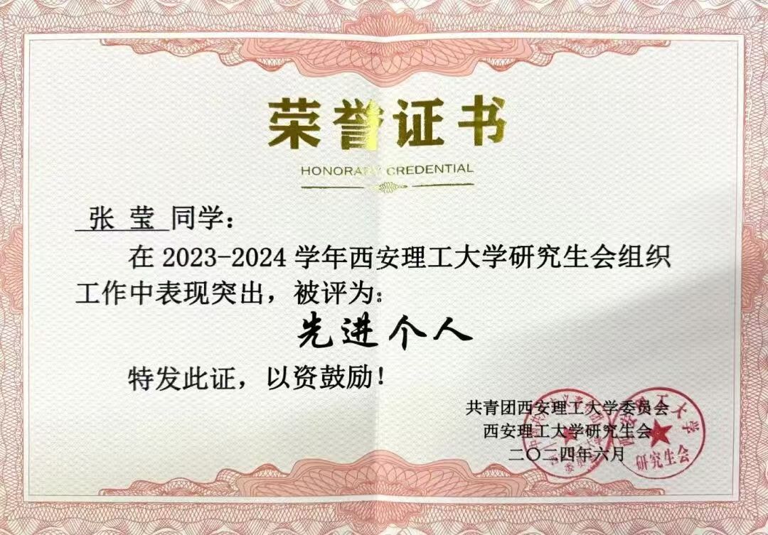 积极投身各类高水平竞赛,张莹在实践中检验所学、突破自我。作为负责人带领团队先后荣获第七届中国青年志愿服务项目大赛国家级银奖、第十届中国研究生智慧城市技术与创意设计大赛国家级三等奖、中国国际老员工创新大赛(2025年)陕西赛区省级铜奖,两次斩获校级“挑战杯”一等奖,以多元竞赛经历锤炼综合能力,展现了青年学子的创新活力与团队协作精神。