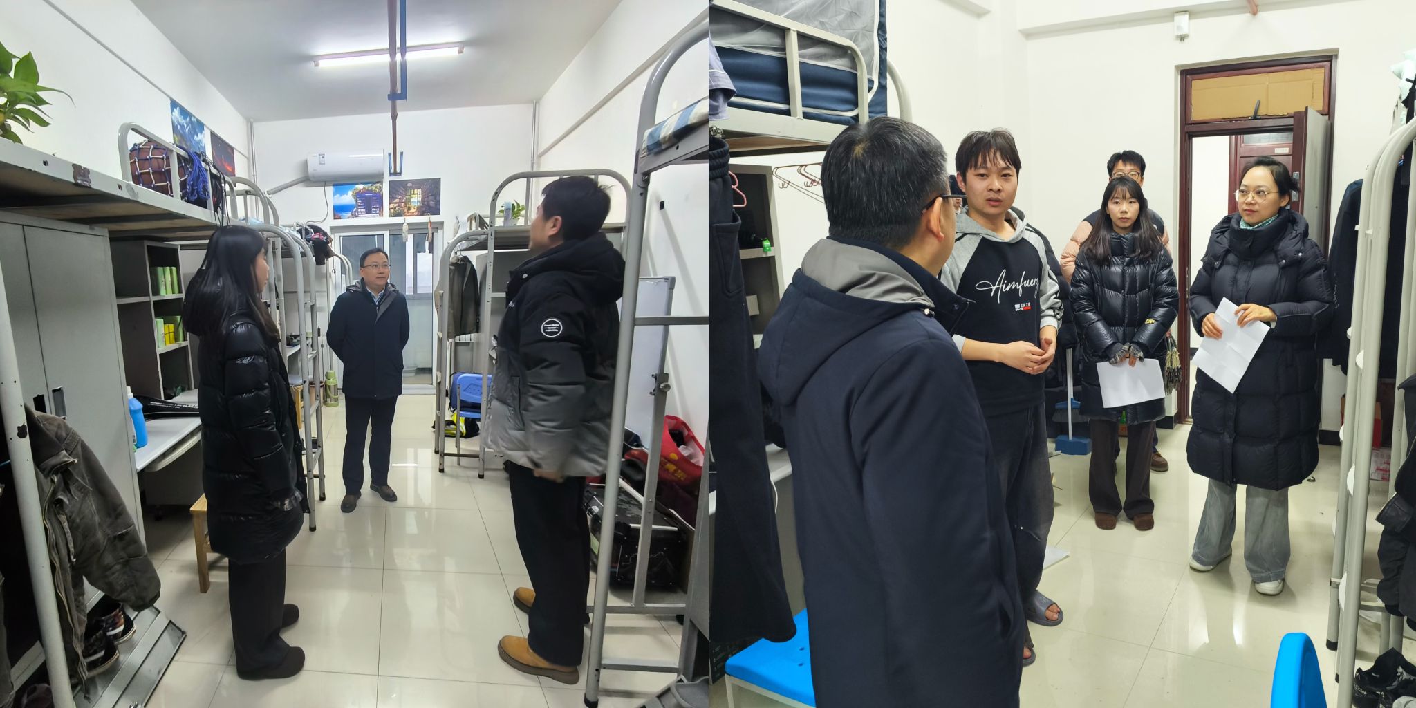 各年级辅导员老师们分别围绕元旦假期的交通安全、网络安全、人身安全、财产安全、宿舍安全等方面对同学们进行了安全防范与指导,深入阐述了学院安全管理工作的具体要求,通过观看视频、分析案例,同学们的自我保护意识得到增强,安全文化氛围更加浓厚。学院也同步开展了节前宿舍安全专项检查,公司党委副书记兼副经理陈文林带队深入各年级员工宿舍,重点排查用电、消防等安全隐患,并提醒员工注意冬季防寒保暖、保持环境卫生。走访过程中,老师们与员工亲切交流,了解近期学习生活情况,给予学习建议与生活指导并嘱咐同学们自觉遵守安全管理规定,无论假期留校抑或外出返乡,均须严守安全准则。